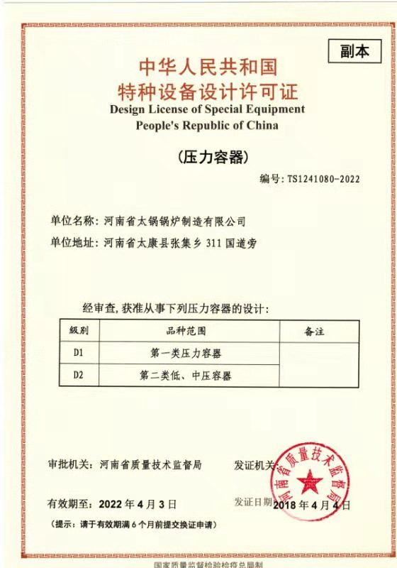 A級鍋爐制造許可證